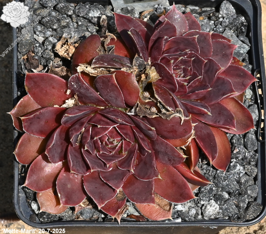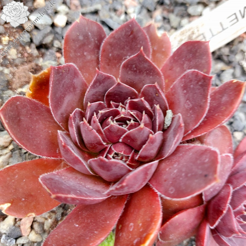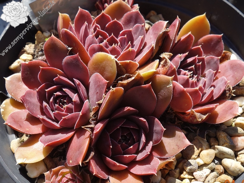 Rosetten bis 8 cm, Blätter lanzettlich, lang bespitzt, purpurrot, Blattränder bewimpert