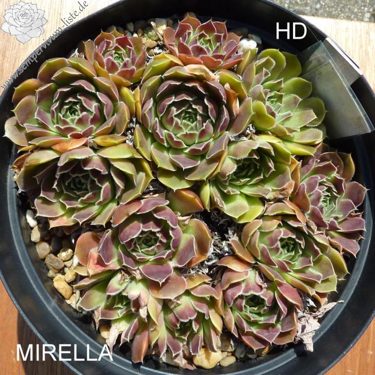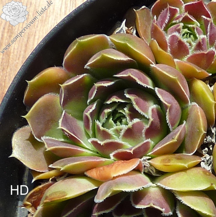 Rosetten bis 5 cm, keilförmige Blätter kurz bespitzt, Mischfarben grün - ocker - rosa