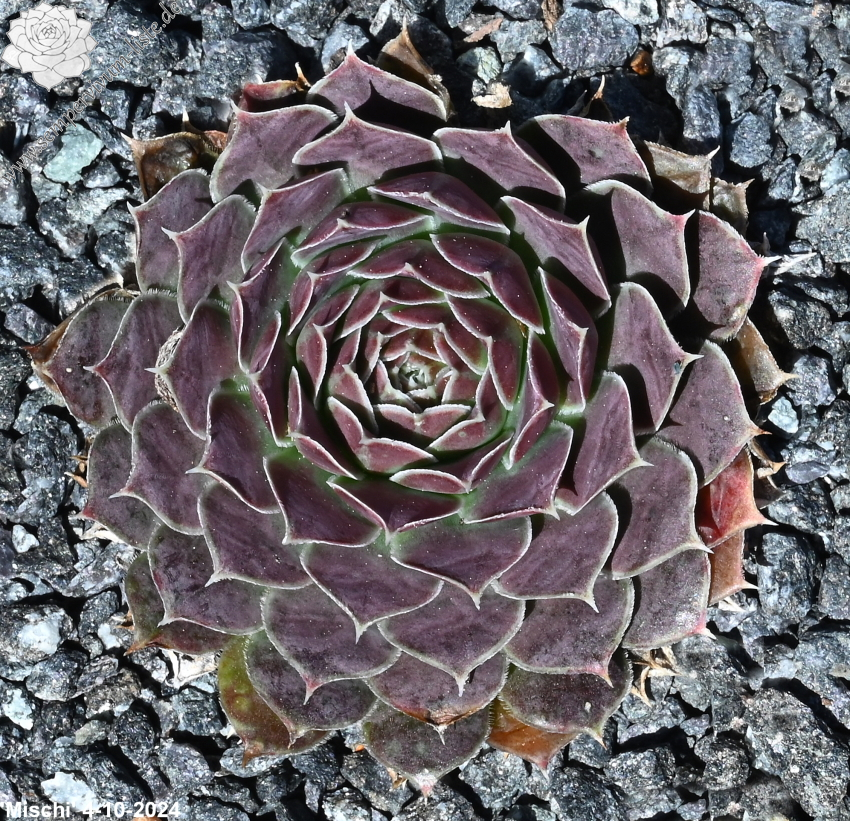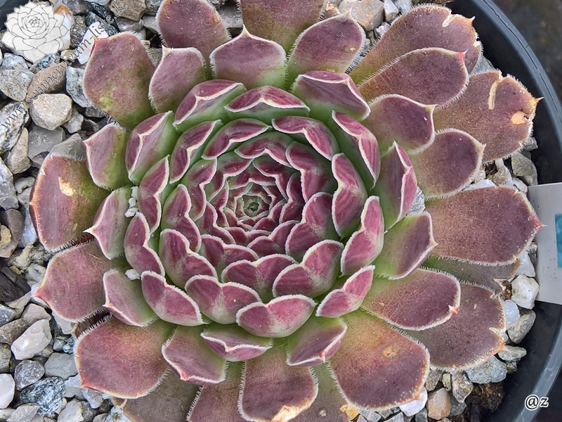 Rosetten bis 5 cm, Blätter lanzettlich, lang bespitzt, resedagrün, obere Blattdrittel pastellviolett , Blattränder hell