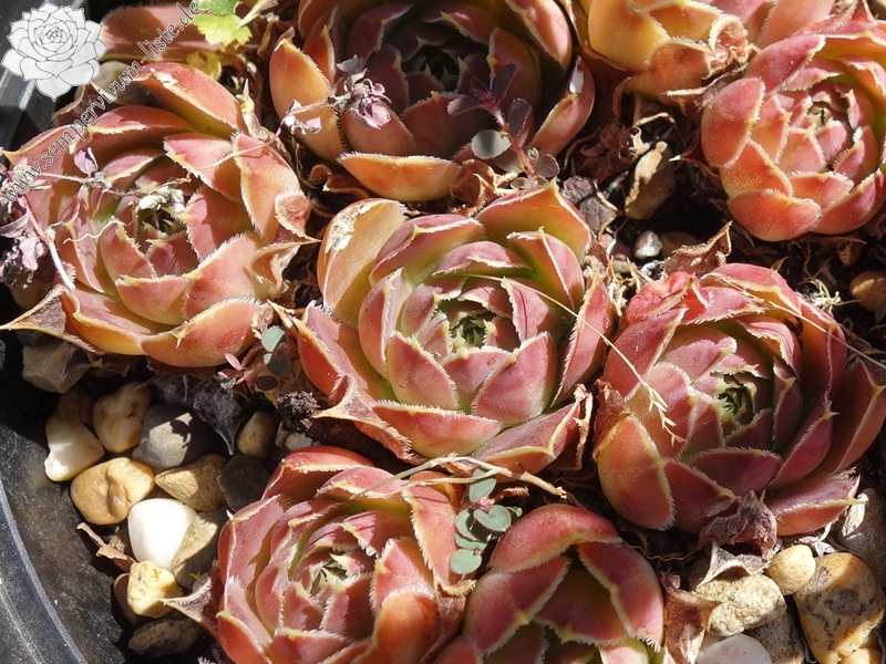 kleine Rosetten, Blätter lanzettlich, lang bespitzt, Mischfarben grünlichgelb - altrosa - rotbeige, Blattränder gelblich