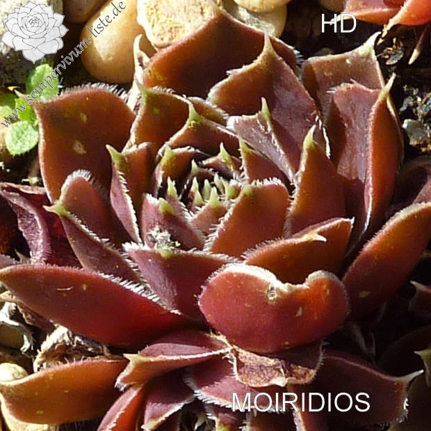 kleine Rosetten, Blätter oval, lang bespitzt, perlrosa - lachsrot, Blattränder bewimpert