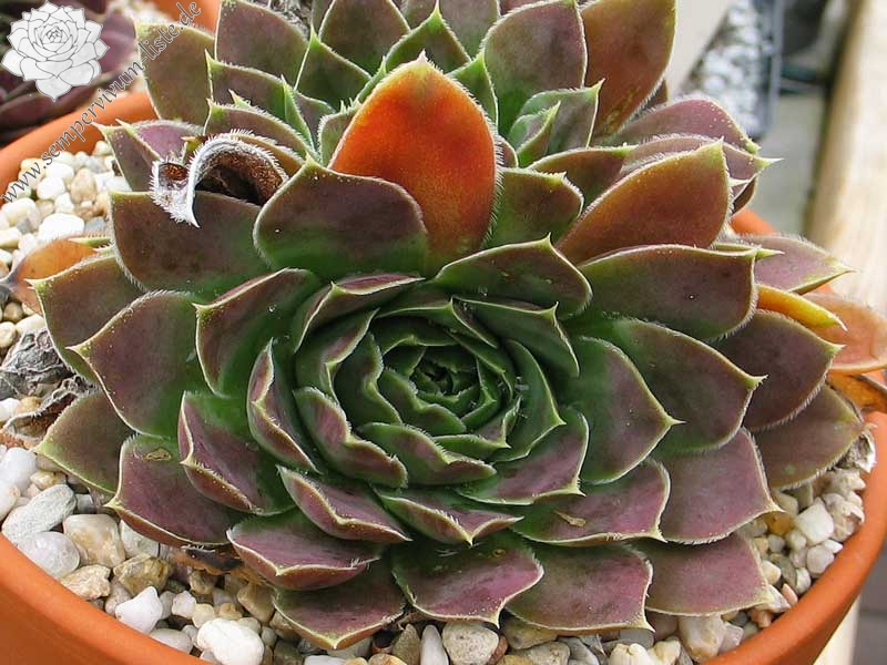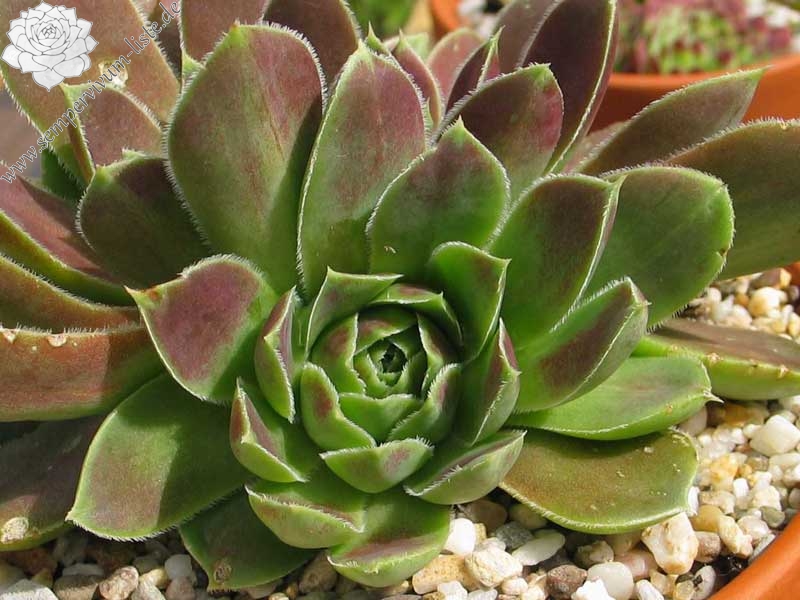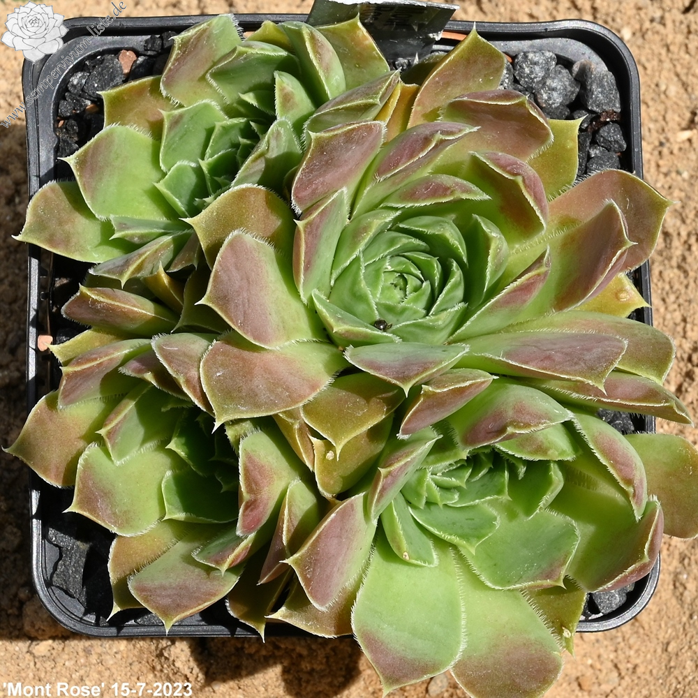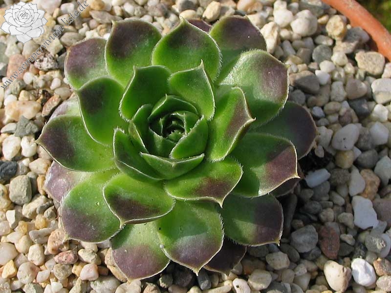 Ein kleiner wüchsiger Sämling aus den Niederlanden von Cornelis Versteeg. Er hat schöne Züchtungen eingeführt. Am schönsten ist ihre Färbung im September in Rosa mit grünem Zentrum der Rosetten.