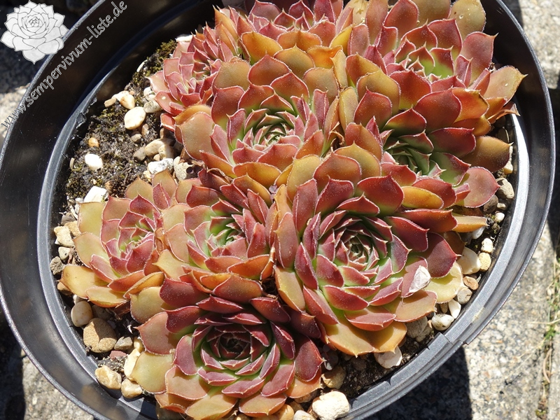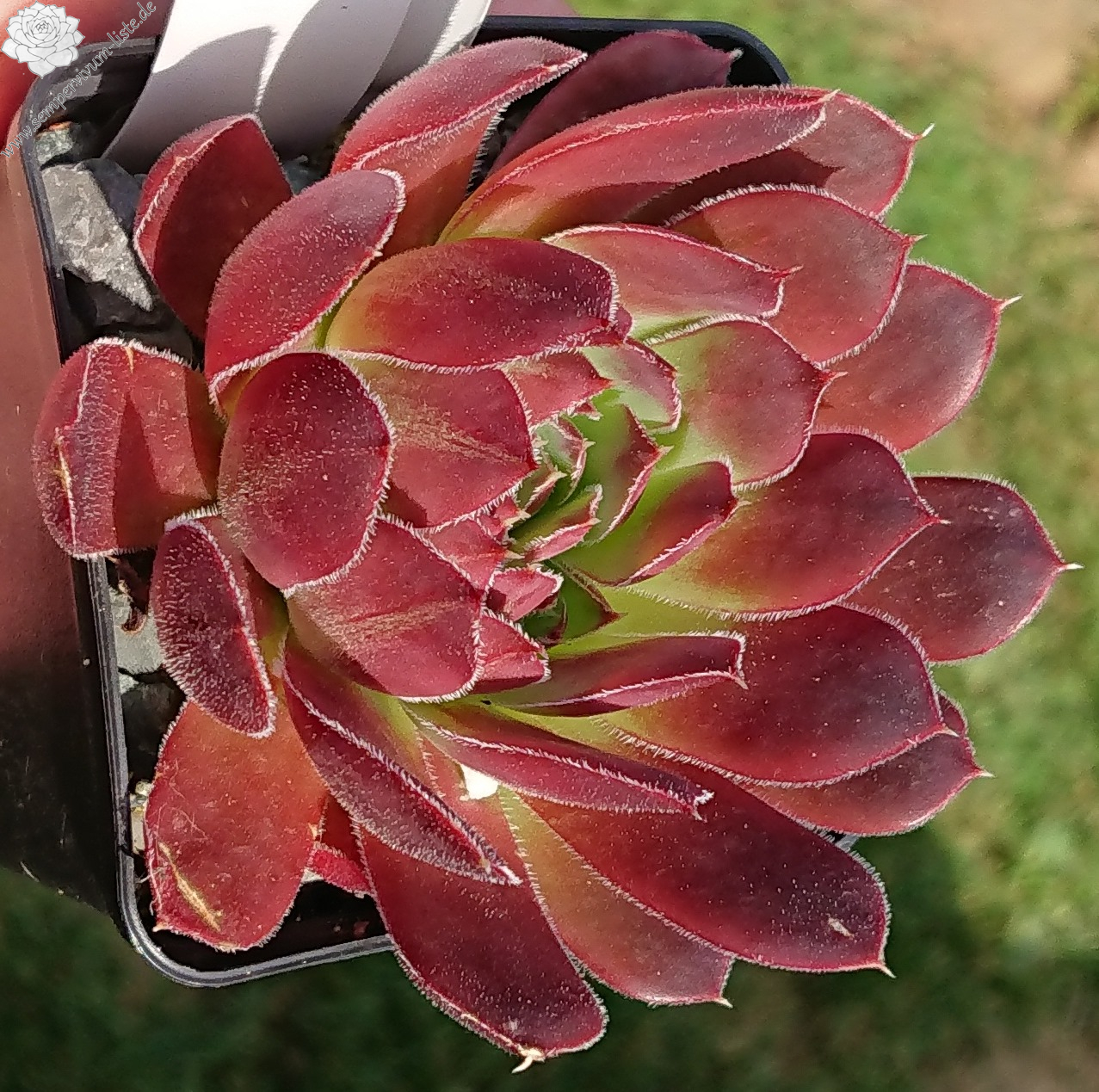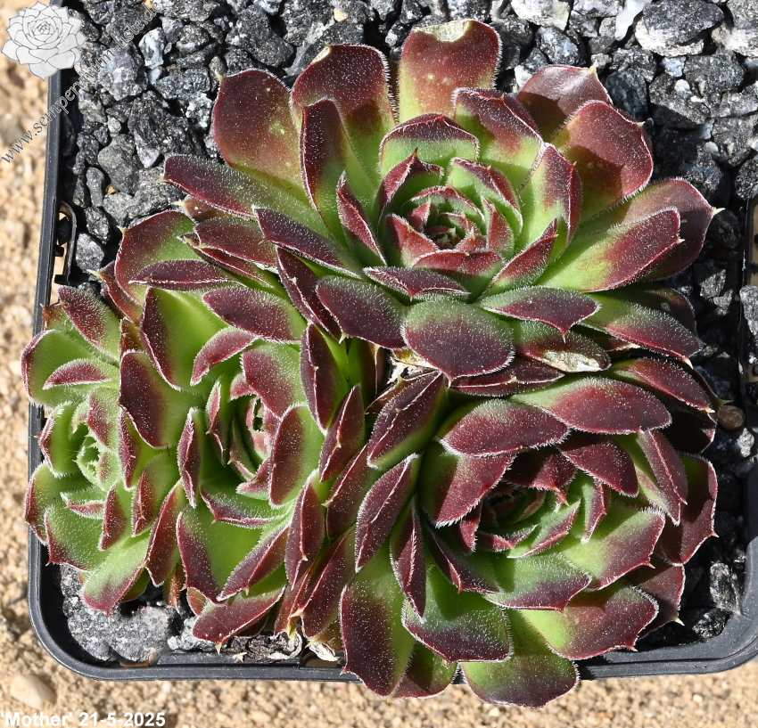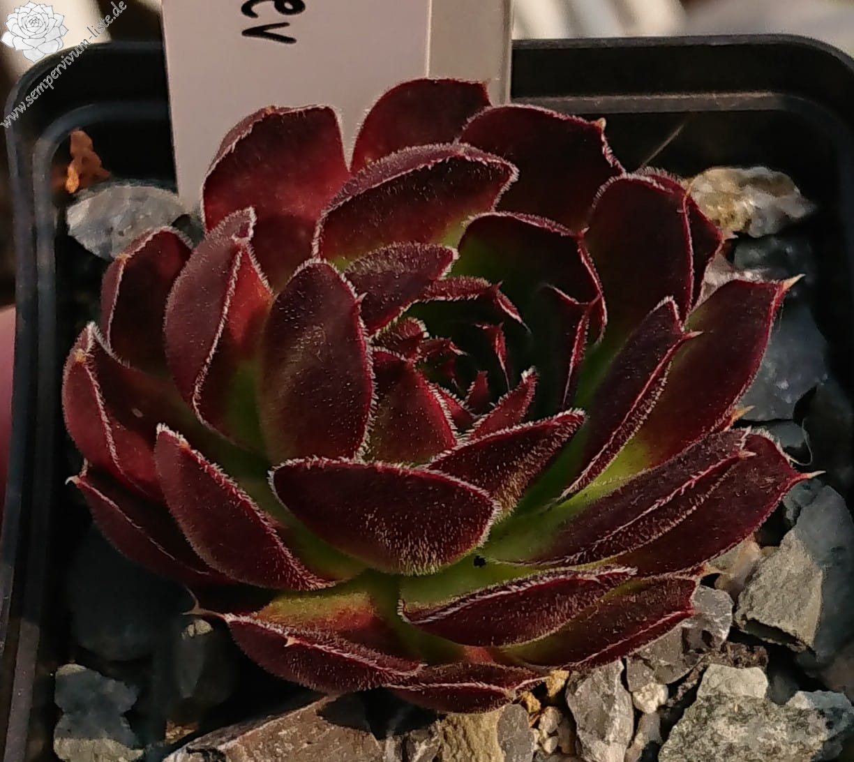 kleine Rosetten, keilförmige Blätter, kurz bespitzt, dunkelweinrot - braun , Ränder hell bewimpert