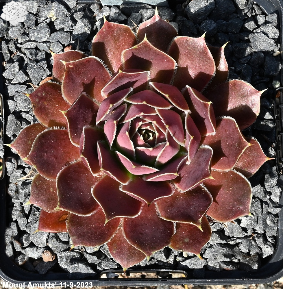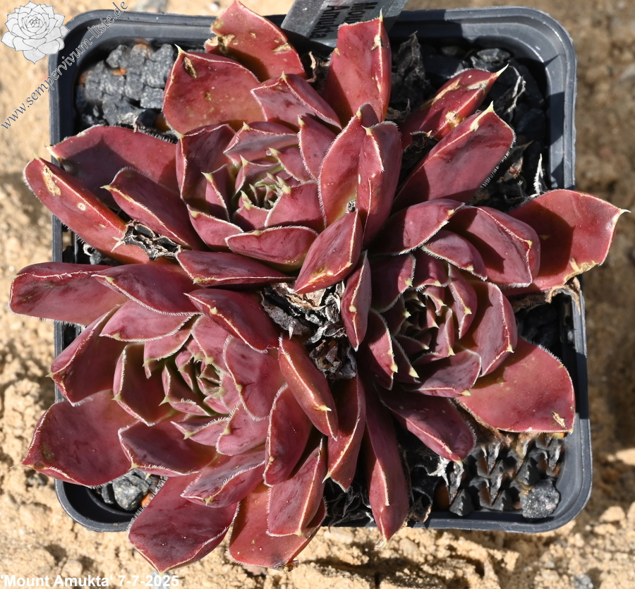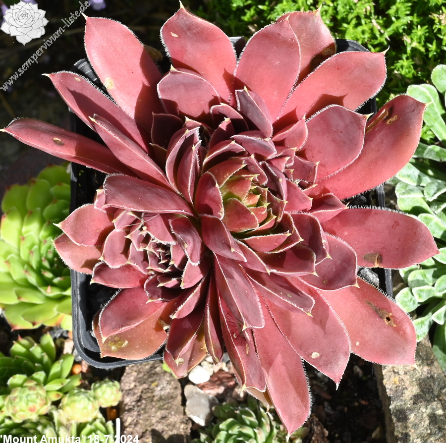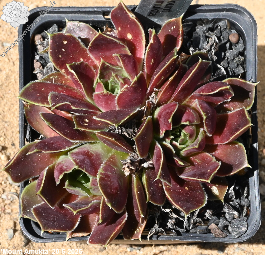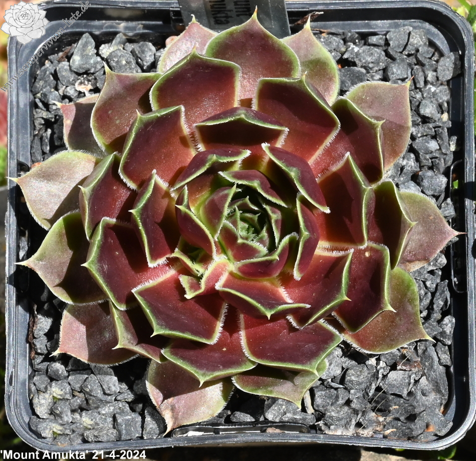 Rosetten bis 7 cm, Blätter breit spatelig, kurz bespitzt, braunrot - rose, Blattränder bewimpert