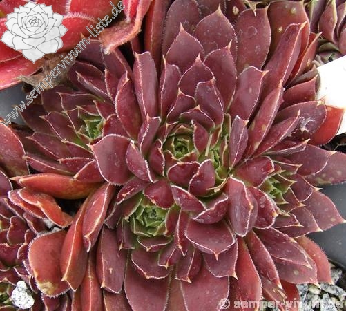 kleine Rosetten, Blätter oval, lang bespitzt, braunrot - weinrot, Herz hellgrün, Blattränder grünlich
