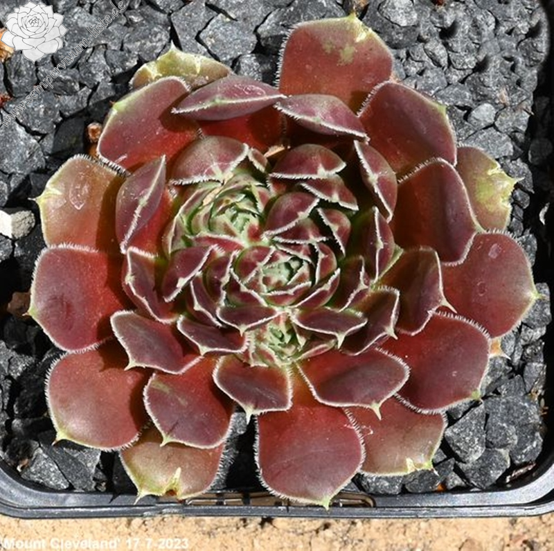 Rosetten bis 6 cm, Blätter eiförmig, kurz bespitzt, weinrot - oxidrot, Blattränder hell, bewimpert