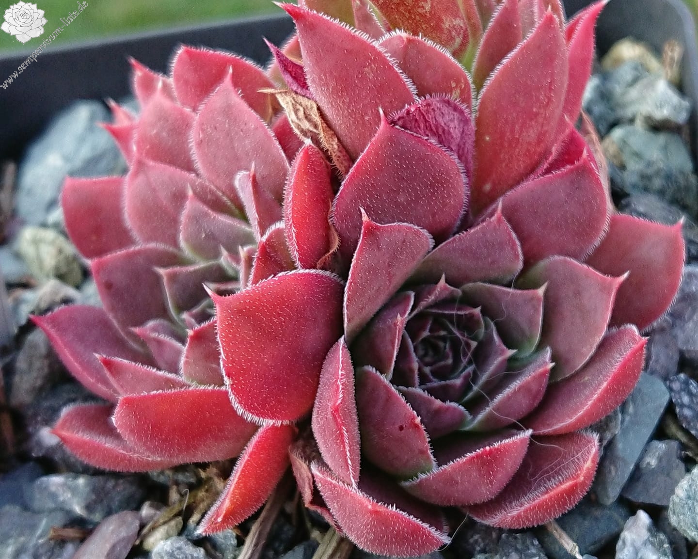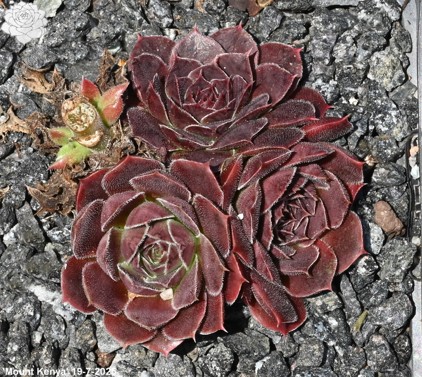 Rosetten bis 5 cm, Blätter rundlich, kurz bespitzt, altrosa - erdbeerrot
