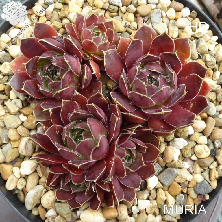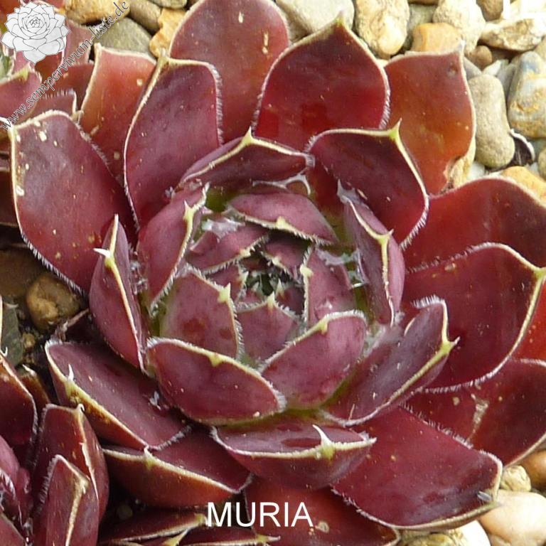 Rosetten bis 8 cm, Blätter breit linealisch, kurz bespitzt, karminrot, Blattränder hell