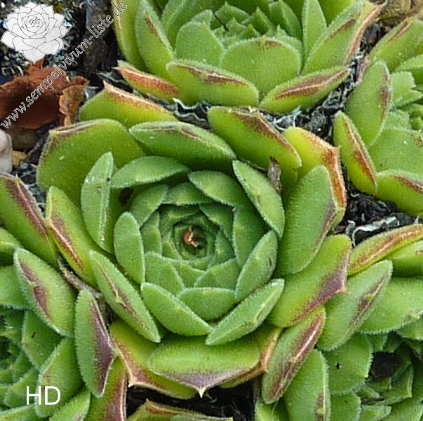 kleine Rosetten, Blätter eiförmig, kurz bespitzt, kräftiges Grün, hellbraune Spitzen
