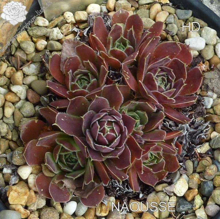 Rosetten bis 5 cm, Blätter breit spatelig, kurz bespitzt, Herz hellgrün, Rest weinrot - purpurrot