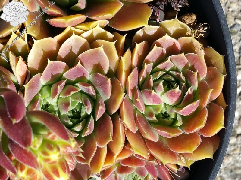 kleine Rosetten Basis grün, obere Blattdrittel in rosa-rot übergehend