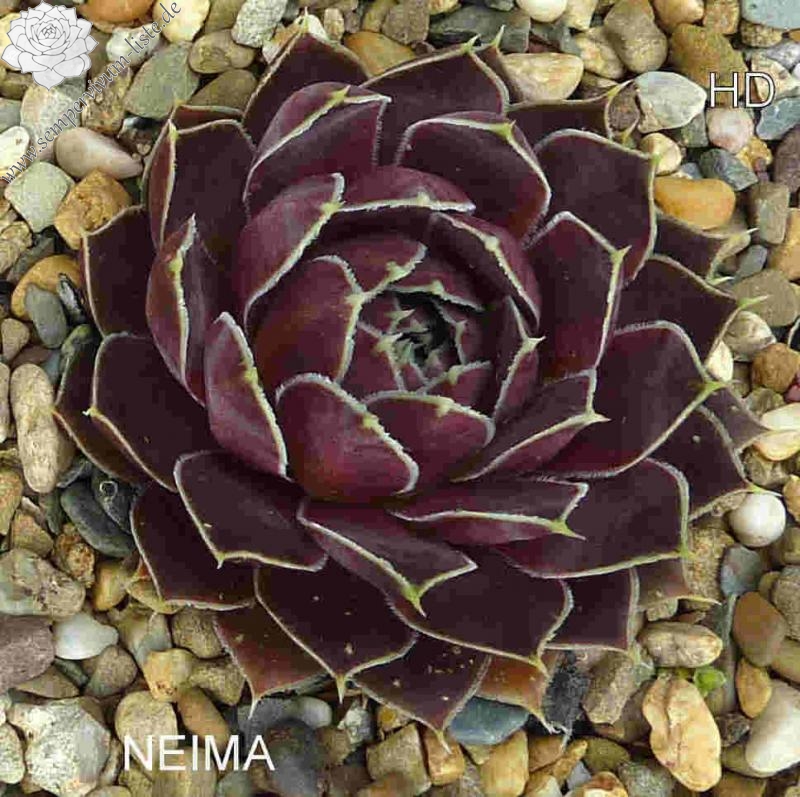 kleine Rosetten, Blätter spatelig, kurz bespitzt, purpurviolett - signalviolett, Blattränder hell, bewimpert