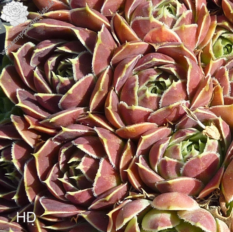 kleine Rosetten, Blätter eiförmig, kurz bespitzt, rosa - rot, Blattränder gelb