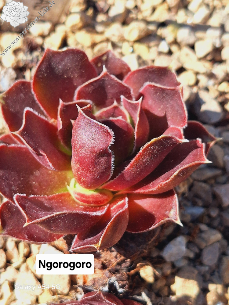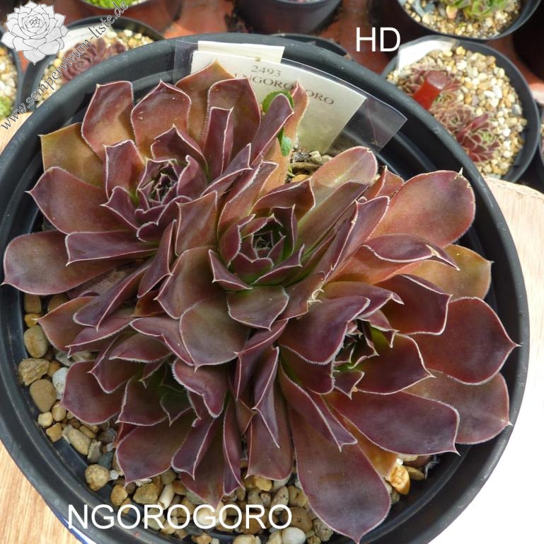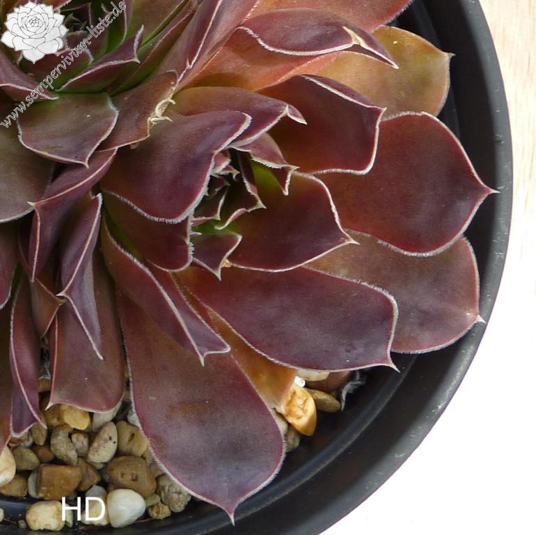 sehr große Rosetten, spatelige Blätter, lang bespitzt, dunkelrot - braun , Blattränder bewimpert