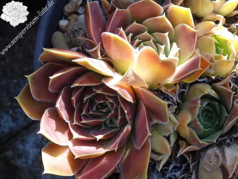 Rosetten bis cm, Blätter linealisch, lang bespitzt, Mischfarben hellgrün - beigerot - pastellbraun, Blattränder grünlich, bewimpert