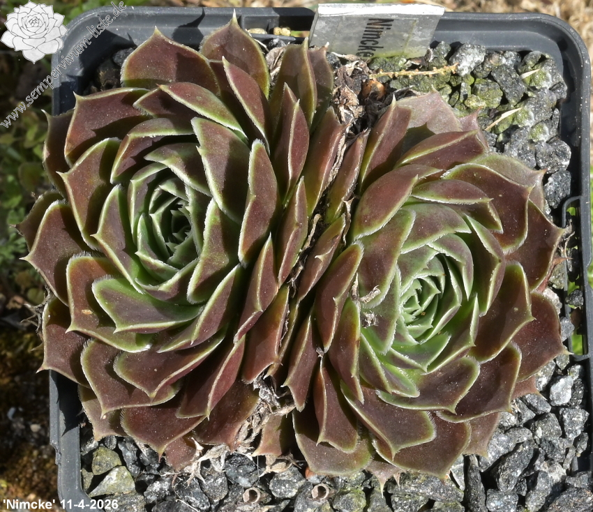 Rosetten bis 6 cm, Blätter eiförmig, kurz bespitzt, rotviolett - bordeauxviolett