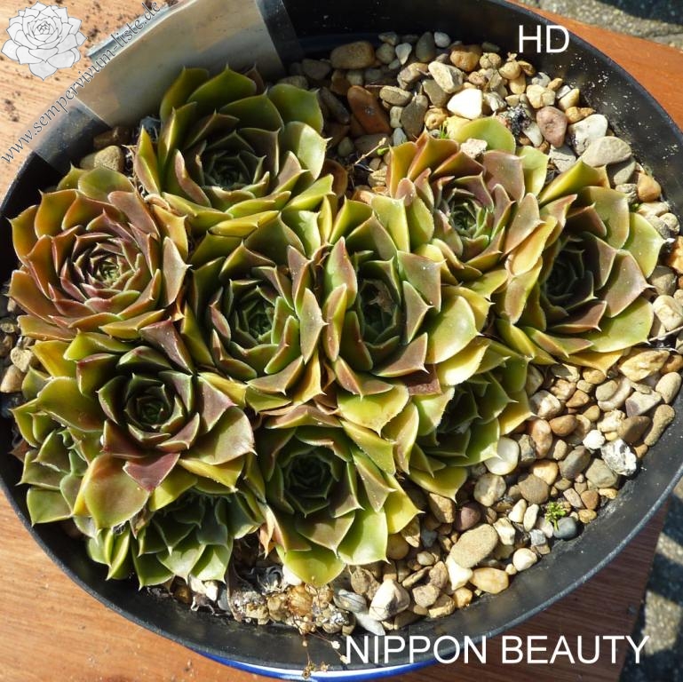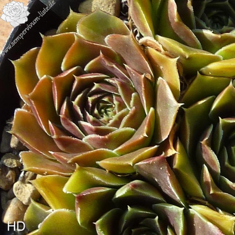 Rosetten 5 cm, Blätter keilförmig, kurz bespitzt, Mischfarben oliv - rosa - braun