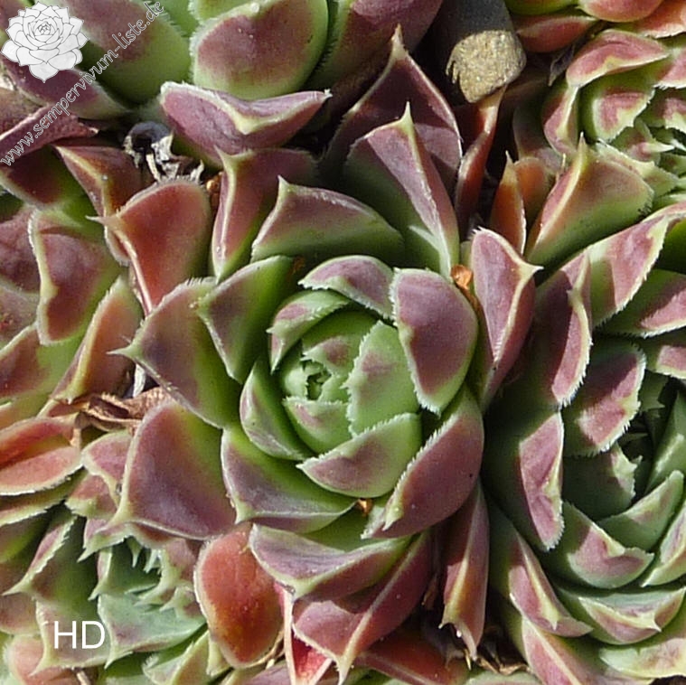 kleine Rosetten, Blätter eiförmig, lang bespitzt, Mischfarben hellgrün - rosa, Blattränder hell