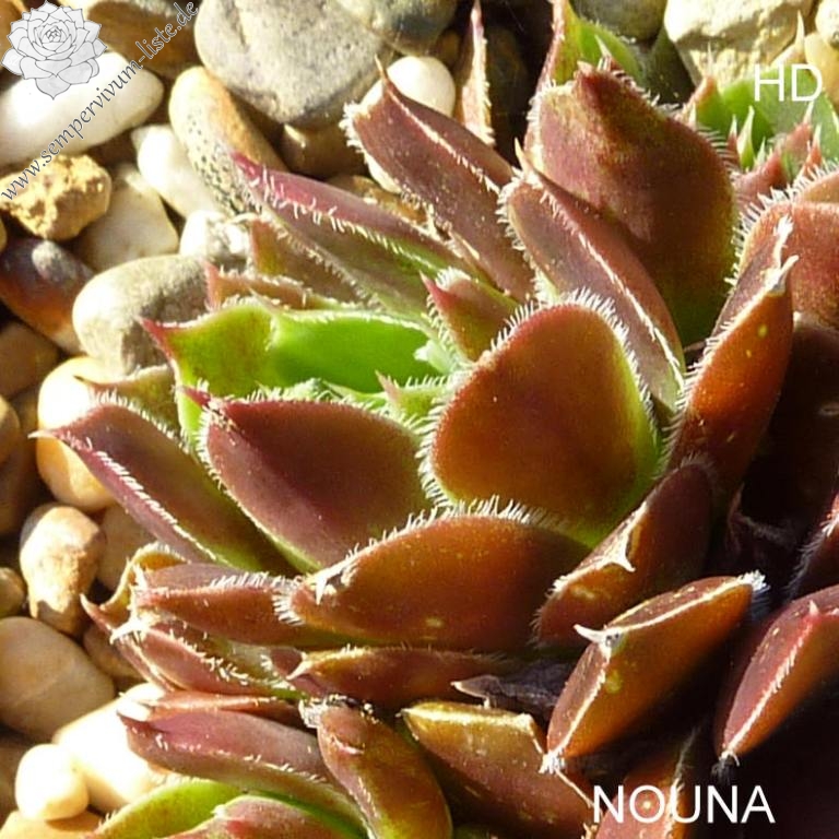 kleine Rosetten, Blätter lanzettlich, lang bespitzt, Mischfarben, beigerot - gelborange, Herz hellgrün, Blattränder bewimpert