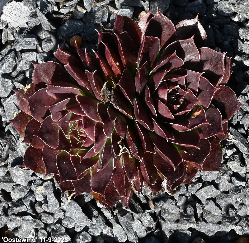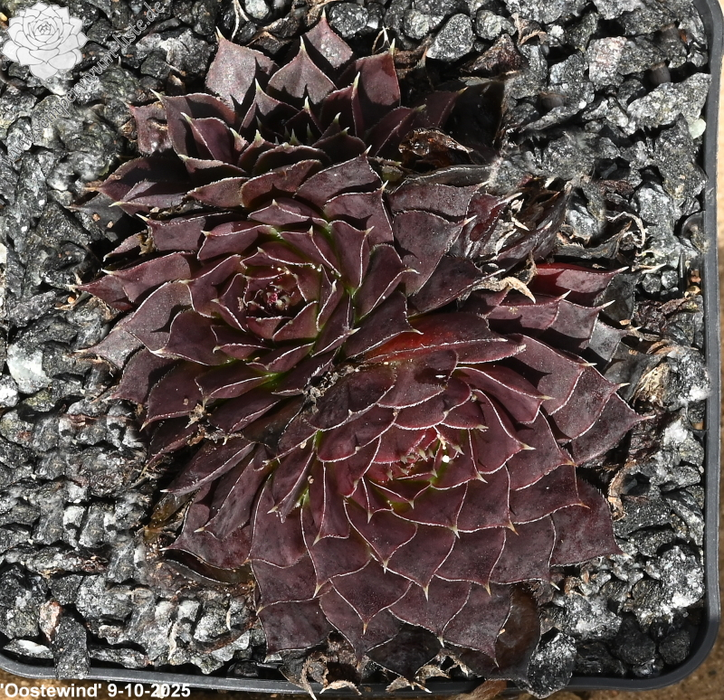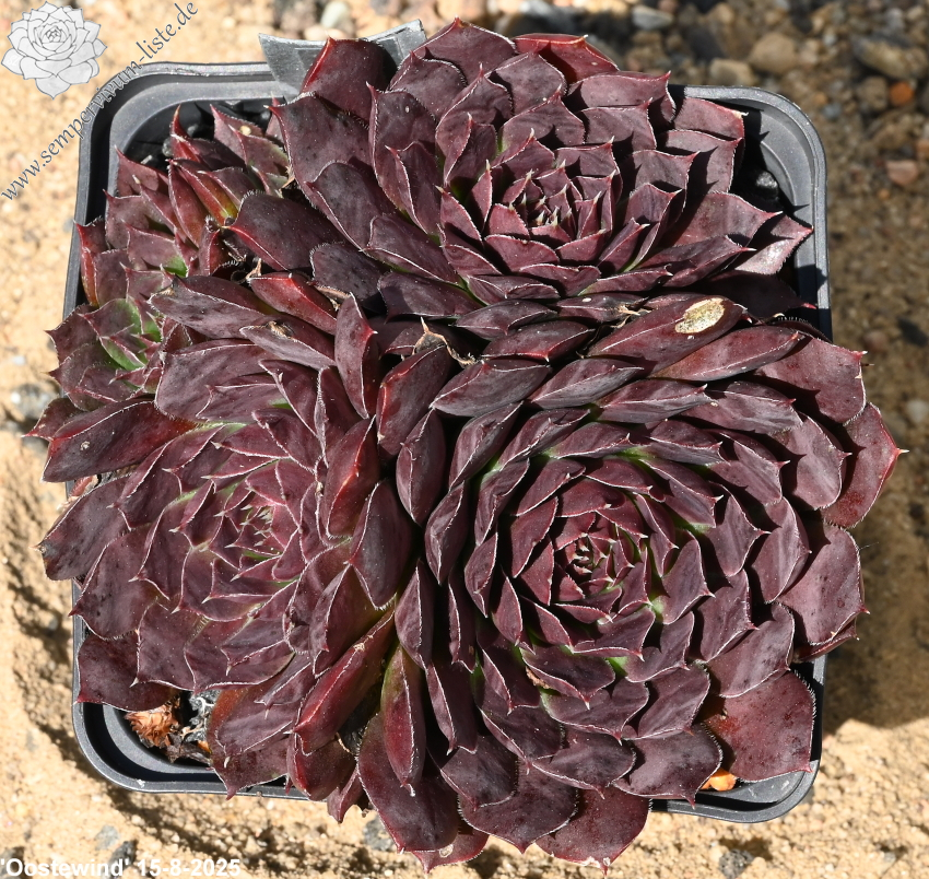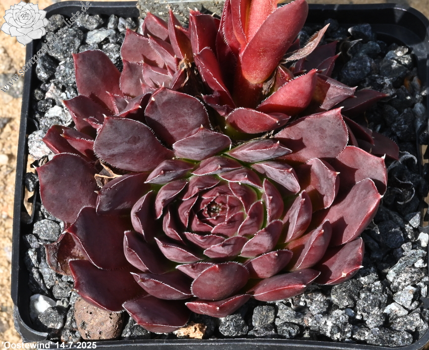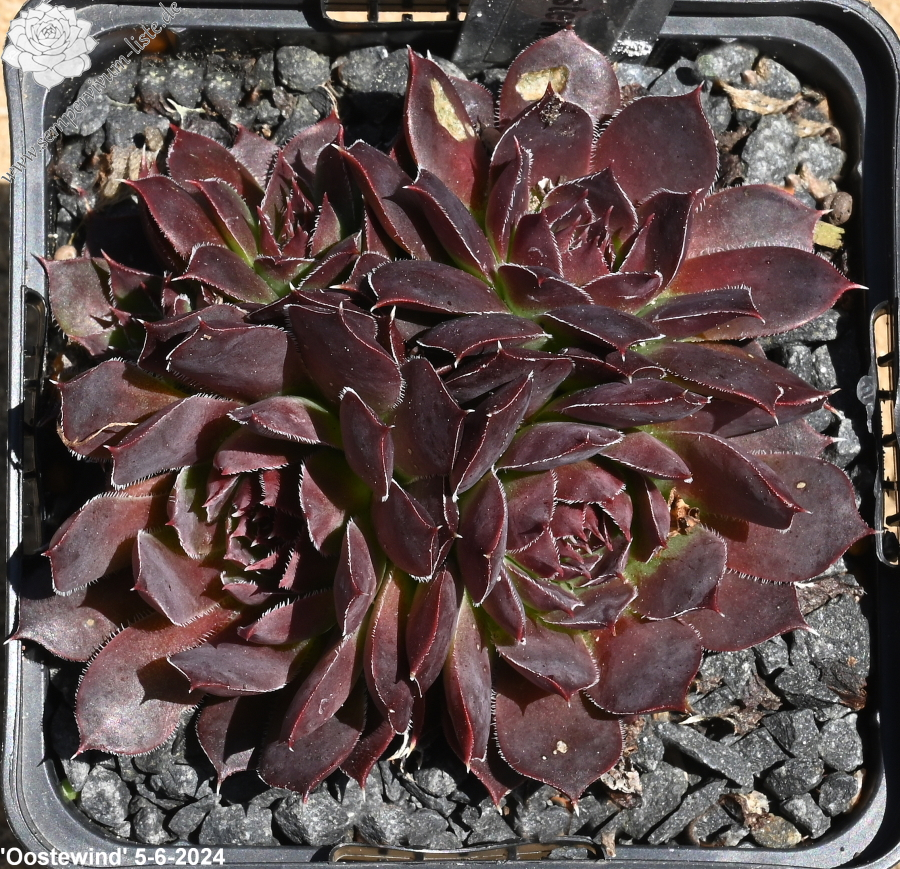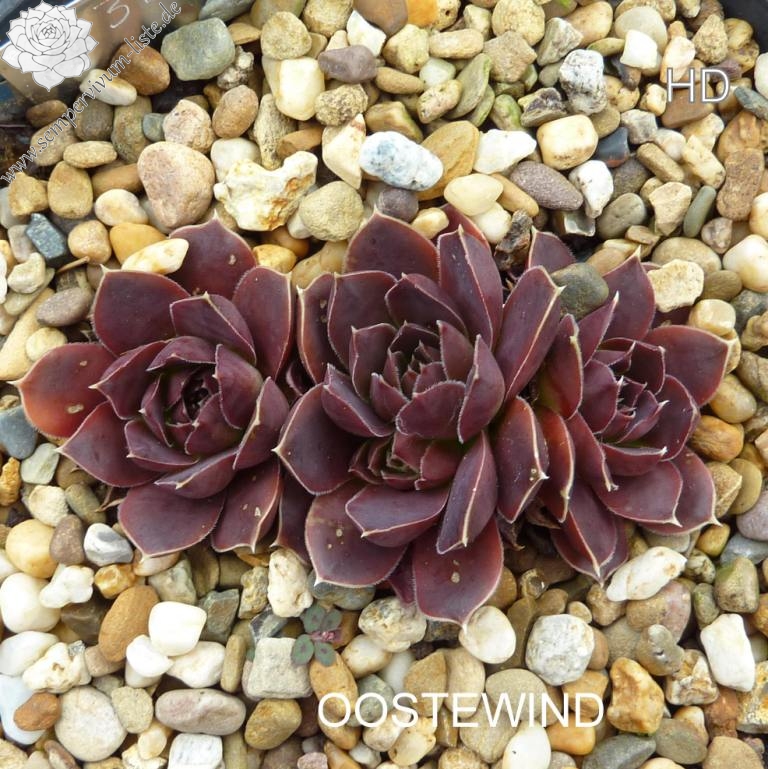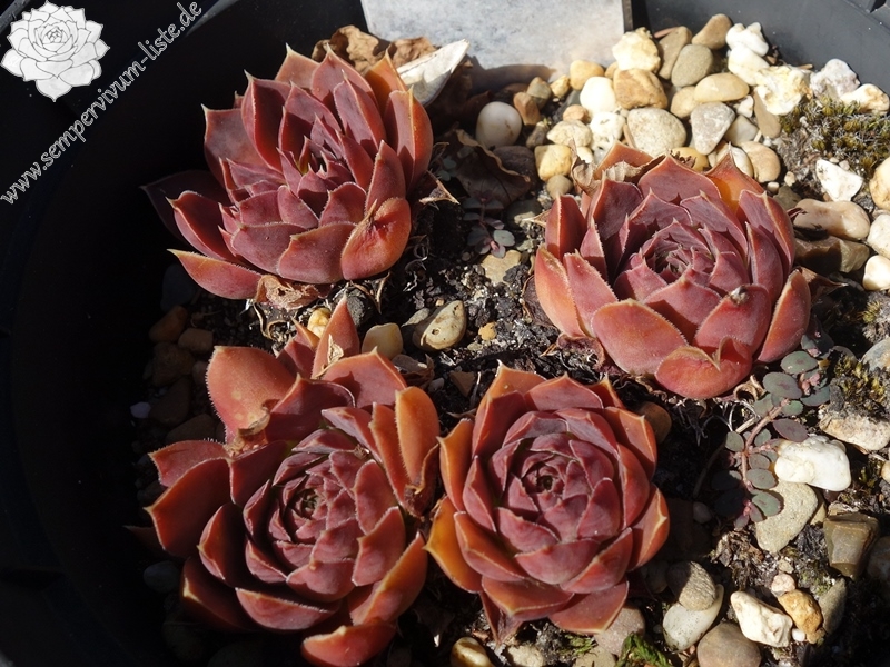 kleine Rosetten, Blätter oval, kurz bespitzt, rotviolett - bordeauxviolett