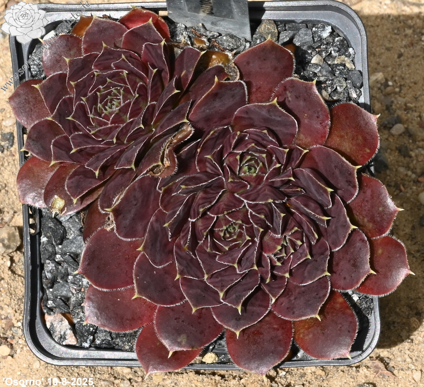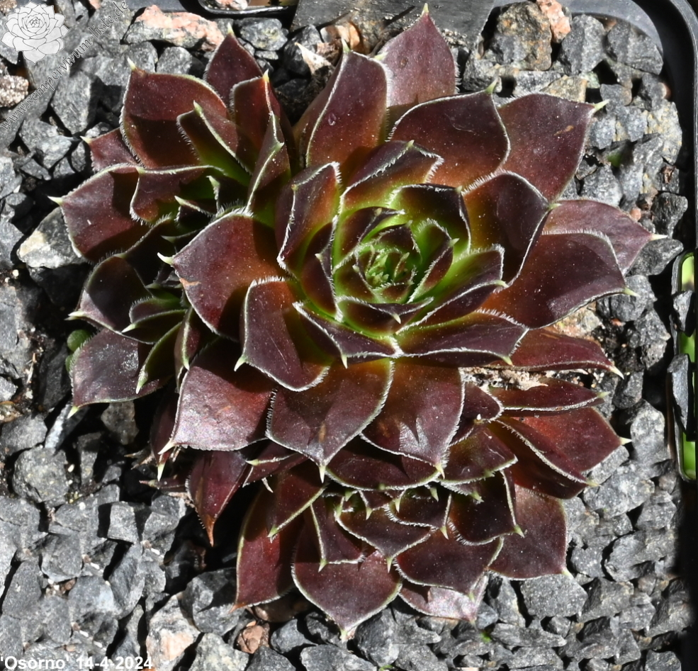 kleine Rosetten, Blätter rundlich, kurz bespitzt, bordeauxviolett, Blattränder bewimpert