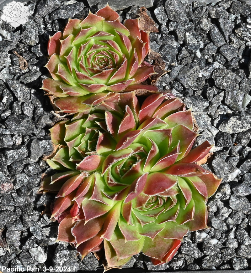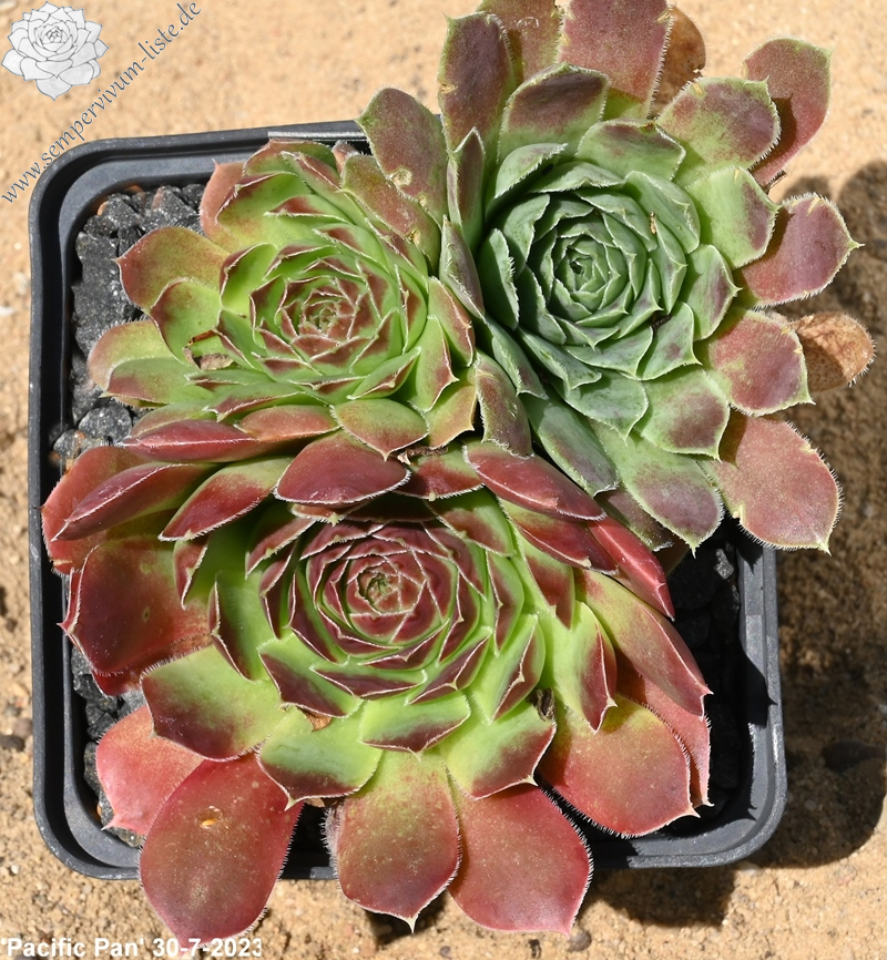 Die Hybride formt größere Rosetten mit sehr breiten Blättern, die mit einer abrupt zulaufenden Spitze enden. Das verleiht 'Pacific Pan' eine besondere Form.