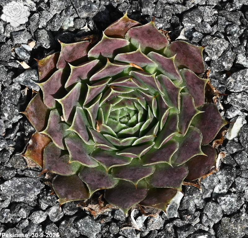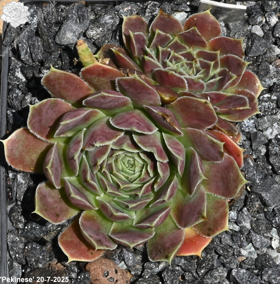 kleine kompakte Rosetten, Blätter eiförmig, lang bespitzt, dunkles Grün mit roten Spitzen