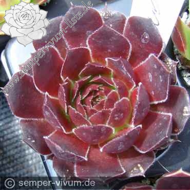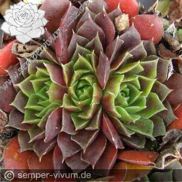 Rosetten bis 4 cm, Blätter oval, kurz bespitzt, weinrot