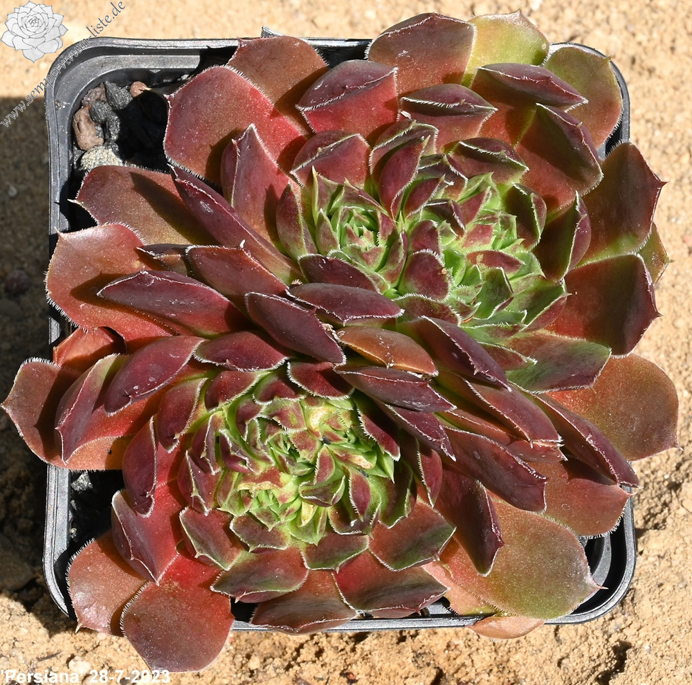 Die belgische Auslese ist in Form und Färbung der Züchtung 'Myrida' sehr ähnlich. Kirschrote Blätter formen kleinere bis mittelgroße Rosetten. Eine hübsche Sorte.