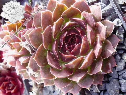 Rosetten bis 5 cm, Blätter rundlich, kurz bespitzt, Basis hellolivgrün, obere Blattdrittel braunrot - oxidrot