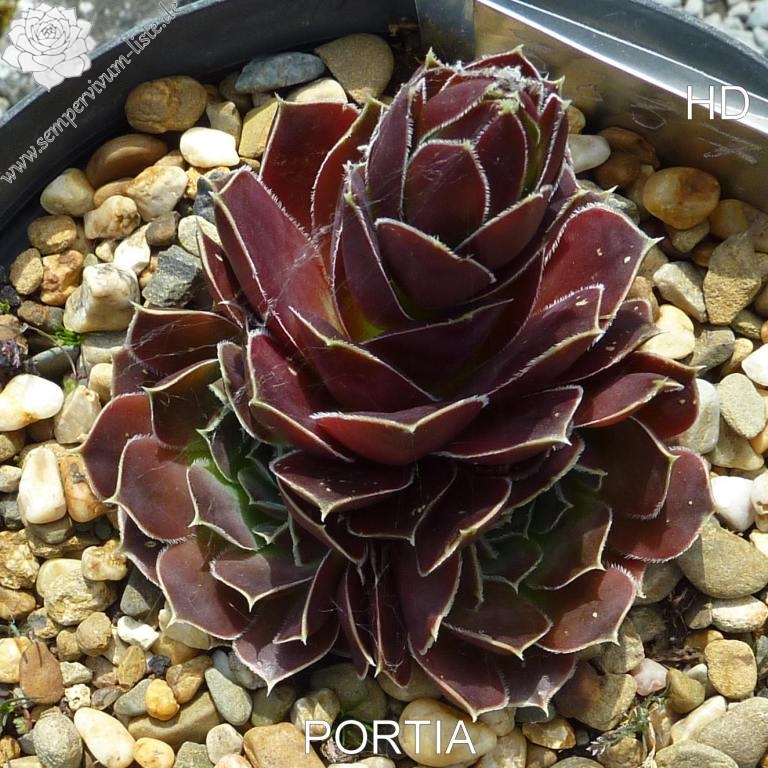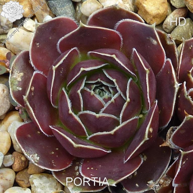 Rosetten bis 4 cm, Blätter rundlich, kurz bespitzt, bordeauxviolett, Blattränder hell, bewimpert
