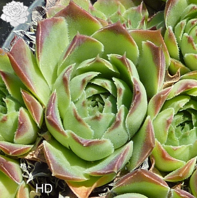 kleine Rosetten, Blätter eiförmig, kurz bespitzt, helles Grün, Blattspitzen braun - rot