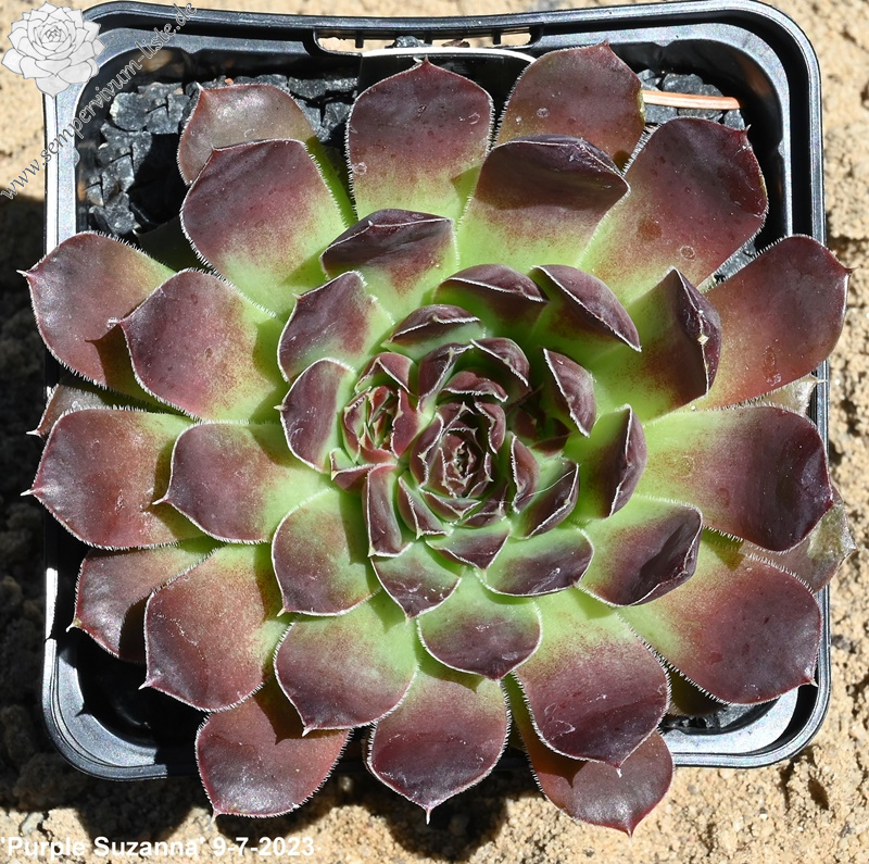 große Rosetten, Blätter spatelig, kurz bespitzt, trübes Lila - Schwarz