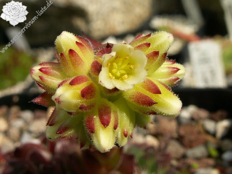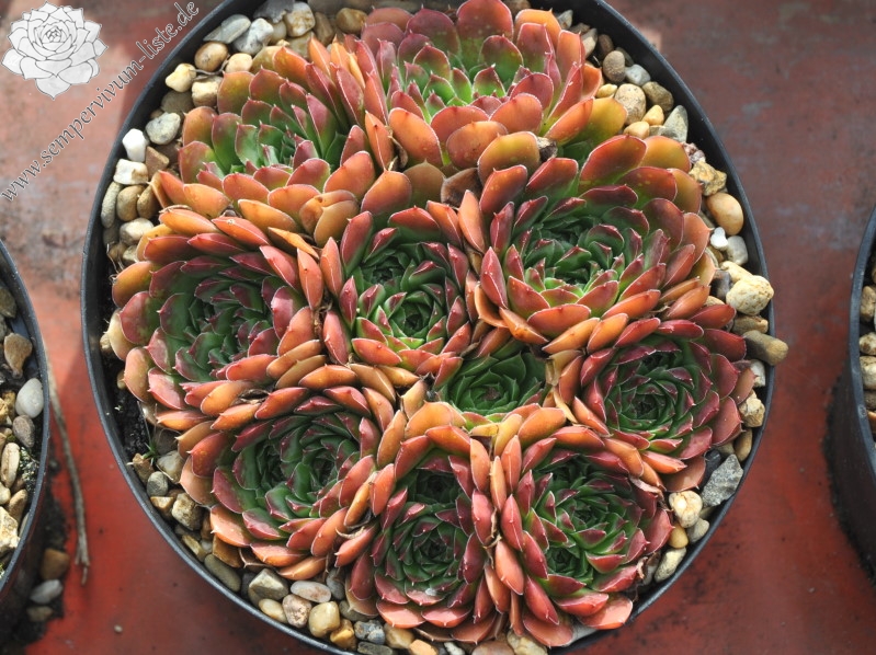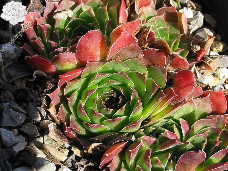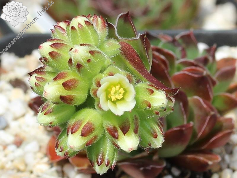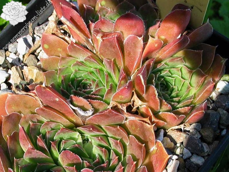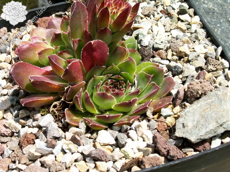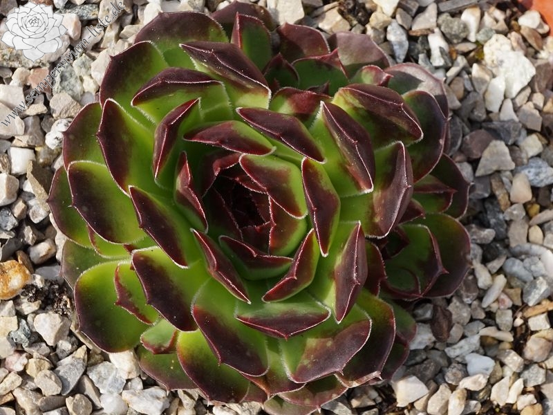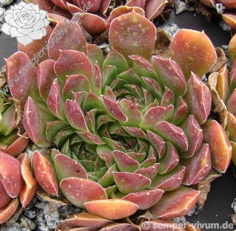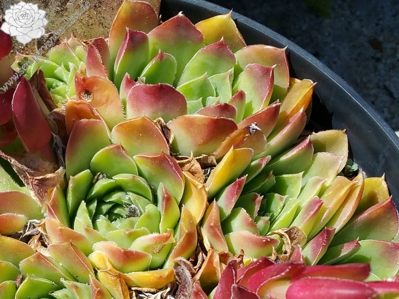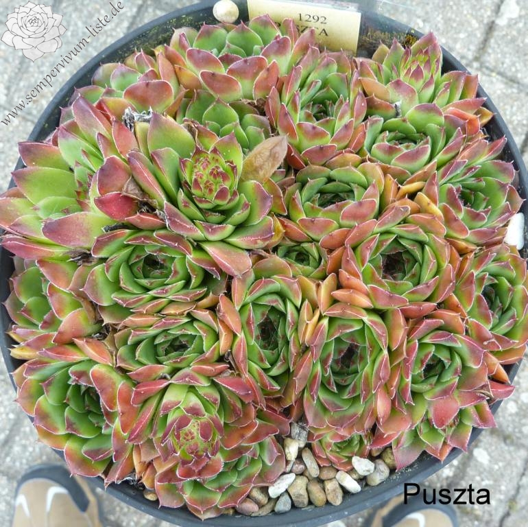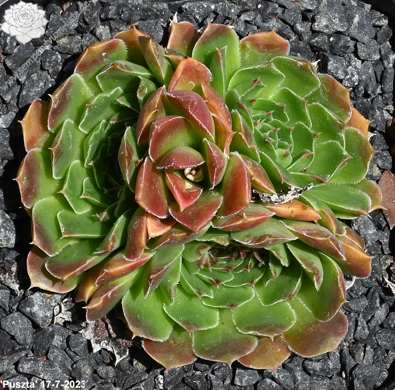 Eine deutsche Auslese mit eher kleineren Rosetten. Der Begriff "Puszta" leitet sich vom slawischen Wort "pust" ab, was auch mit "öde" ersetzt werden kann. Nun im Frühjahr ist die Hybride sicherlich keine herausragende Sorte. Doch zum Sommer verändert sich die Färbung zu Terracotta mit Rosa über jadegrünem Zentrum, was uns sehr gefällt. S. heuffelii cv. Puszta formt kompakte Polster.