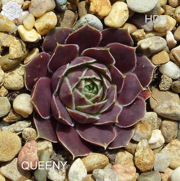 kleine Rosetten, Blätter breit keilförmig, kurz bespitzt, bordeauxviolett, Herz hellgrün, Blattränder bewimpert