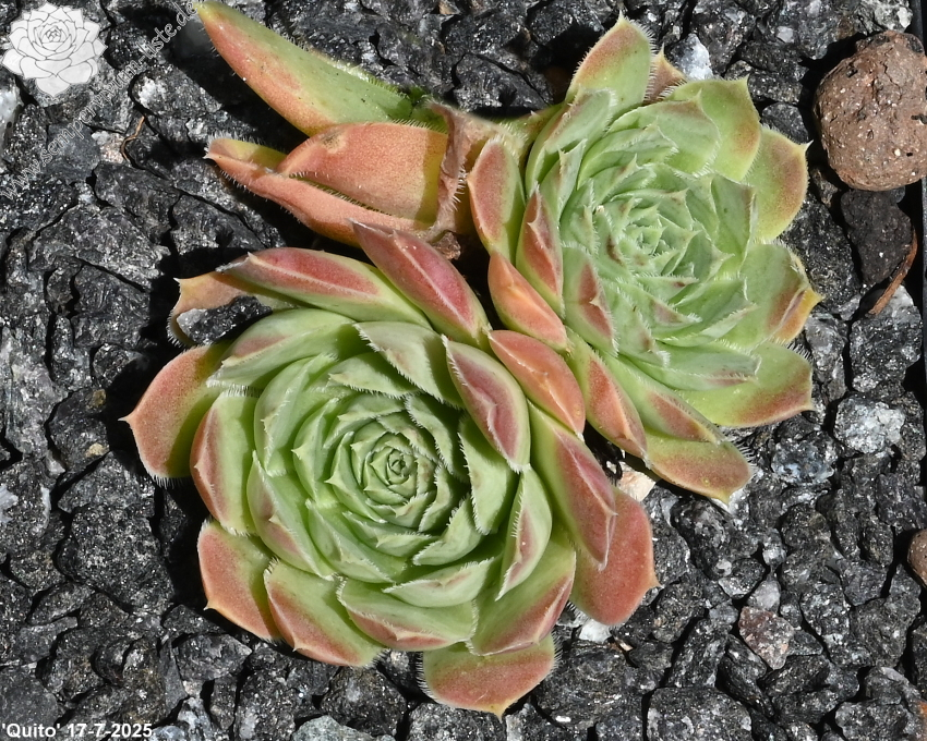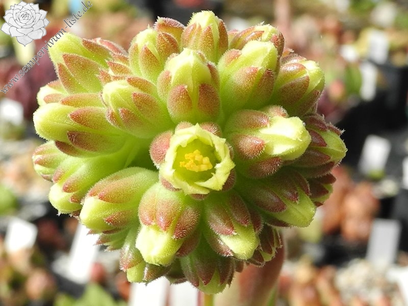 kleine kompakte Rosetten, Blätter rundlich, kurz bespitzt, Mischfarben grün - gelb - rosa