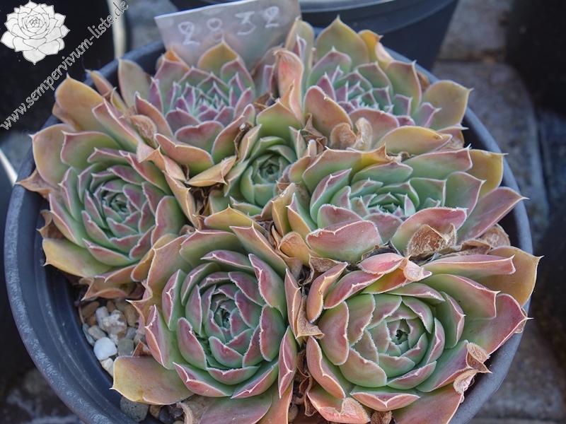 Rosetten bis 8 cm, Blätter rundlich, kurz bespitzt, Mischfarben beigerot - lachsrosa - Basis hellgrün , Blattränder bewimpert