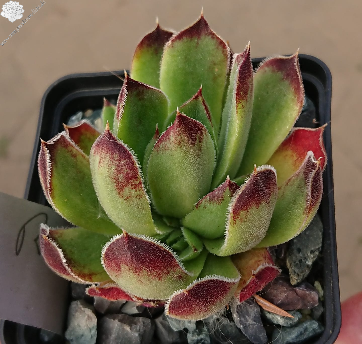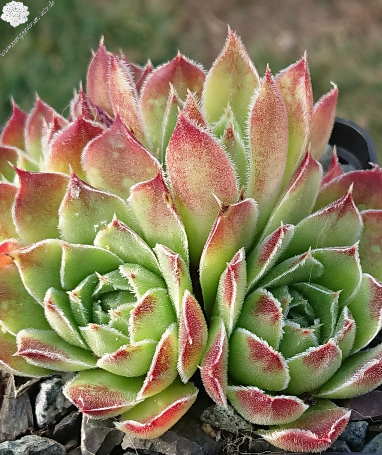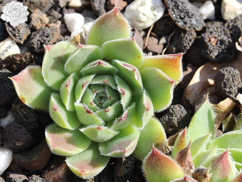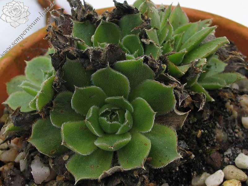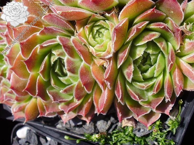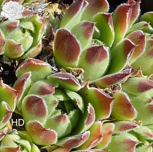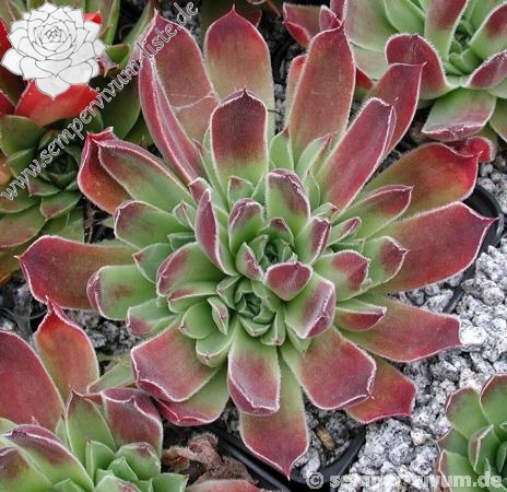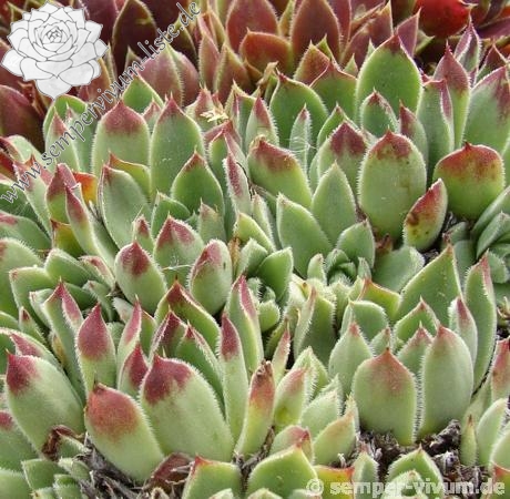 Benannt von Dr. Nixon dem damaligen Leiter der Amerikanischen Sempervivum Gesellschaft, hellgrüne Rosetten mit hellpurpurnen Blattenden mit silbrigen Blatträndern.
