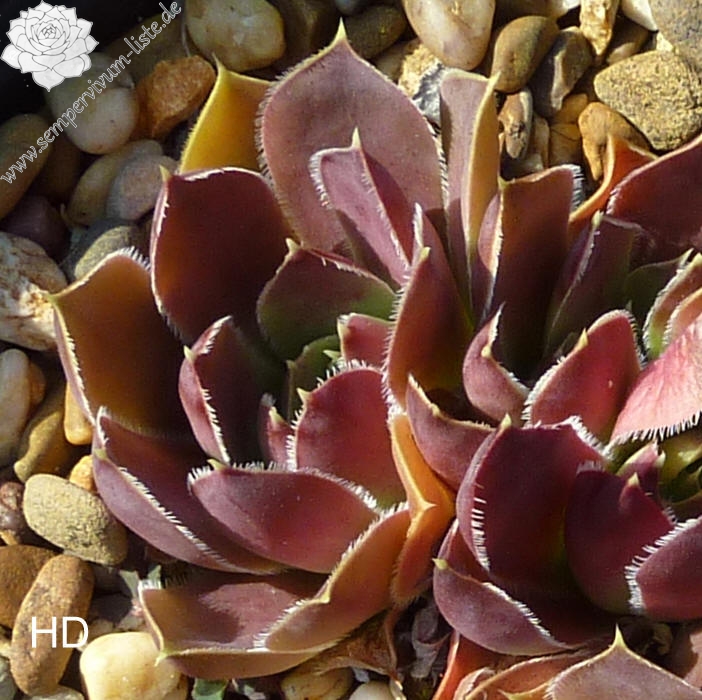 kleine Rosetten, Blätter oval, kurz bespitzt, altrosa, Ränder bewimpert