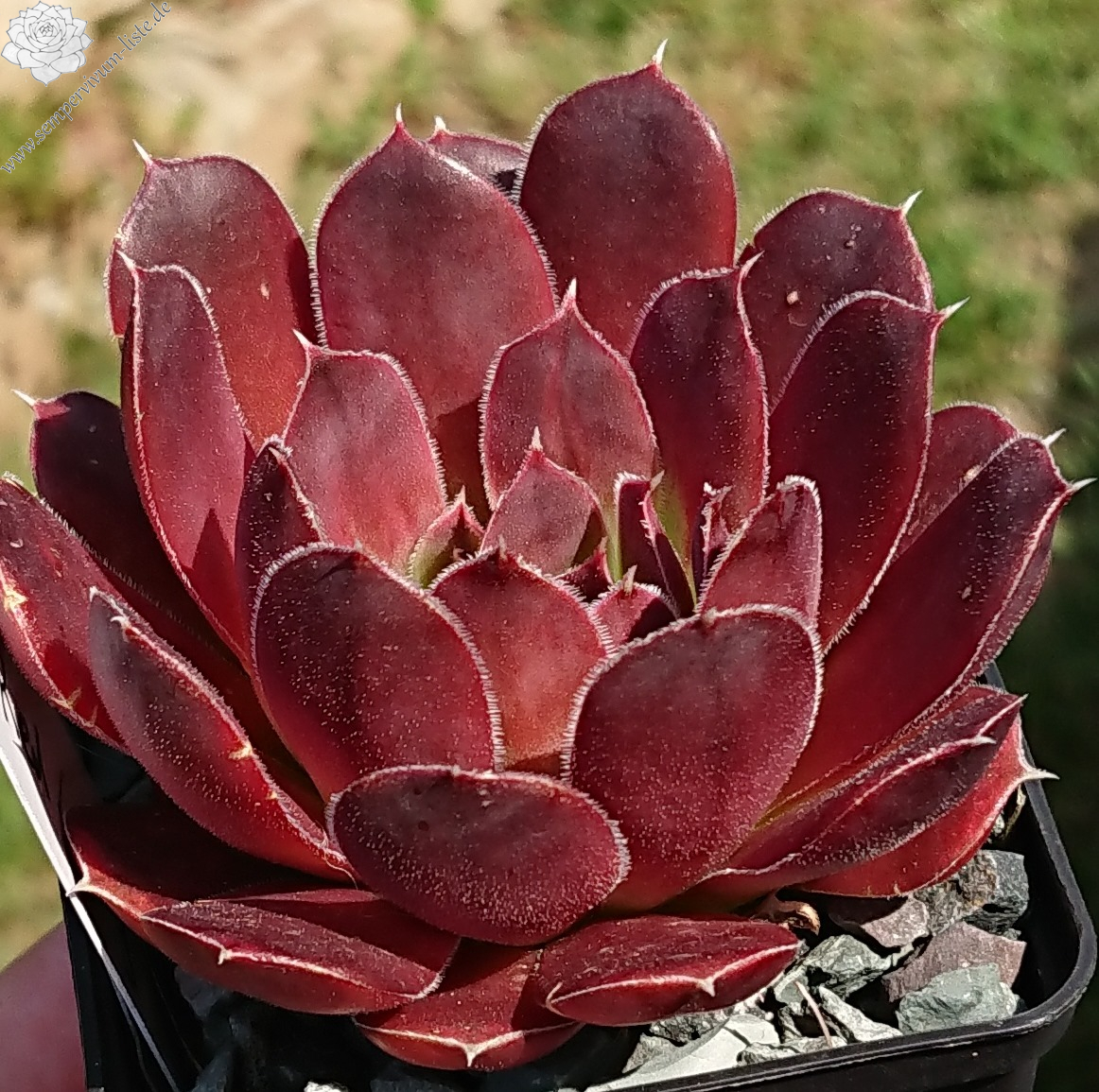 kleine Rosetten, Blätter breit keilförmig, lang bespitzt, samtige Substanz, rosa - altrosa, Blattränder bewimpert