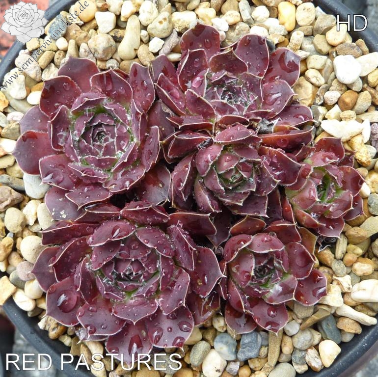 Rosetten bis 6 cm, Blätter breit keilförmig, kurz bespitzt, rotviolett, Blattränder hell, bewimpert