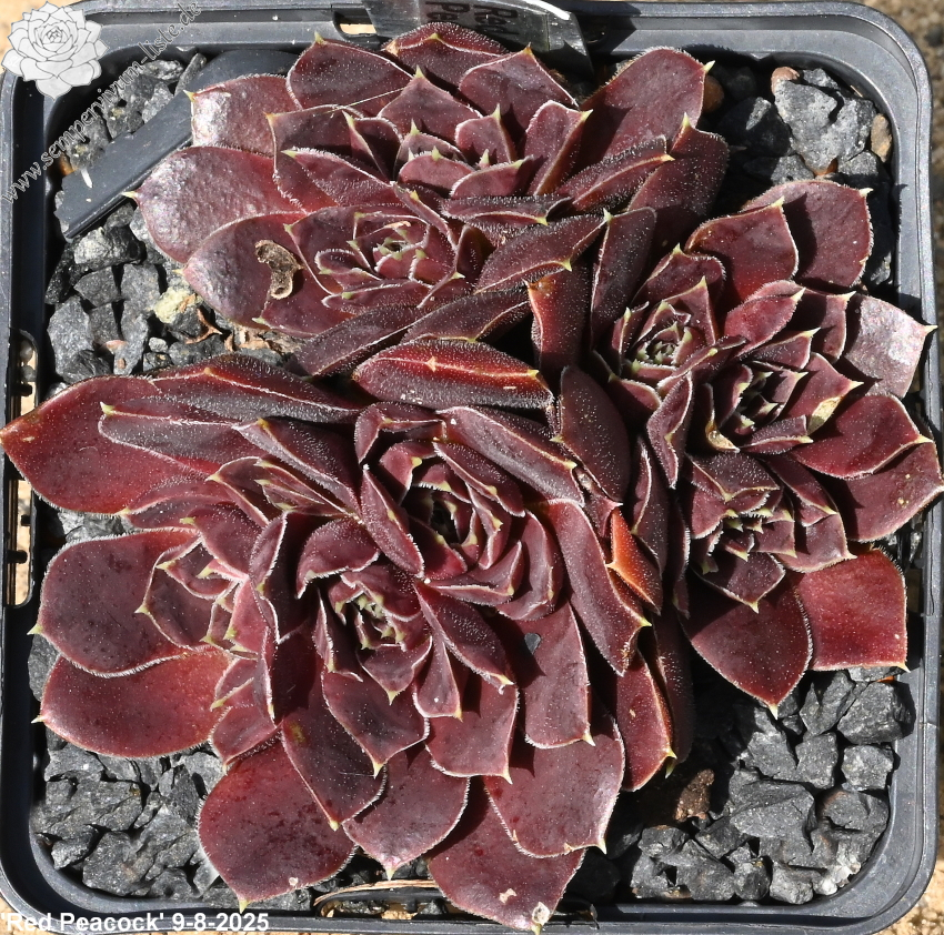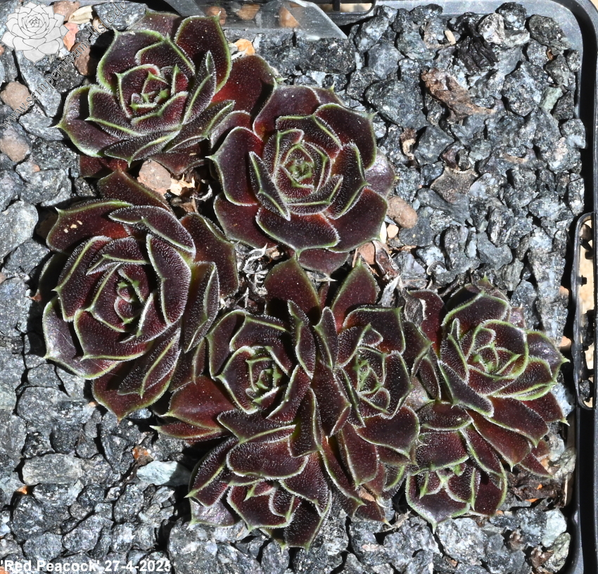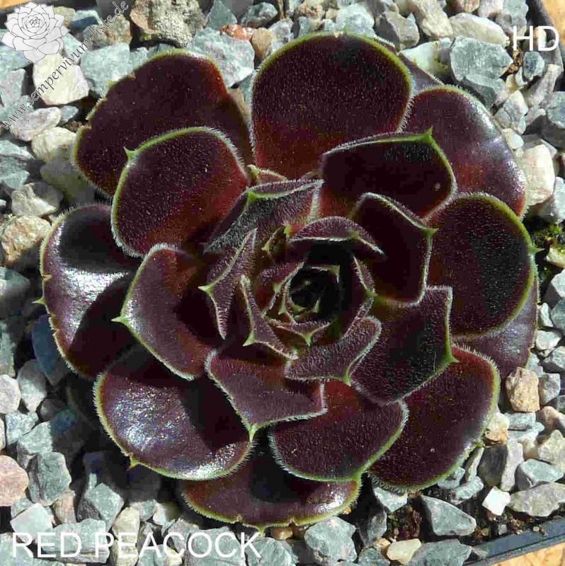 Ein attraktiver Donarsbart mit bezaubernder rosavioletter Färbung. Dazu eine hübsche Form der Rosetten, die auch noch samten überzogen sind, was bei S. heuffelii recht selten zu beobachten ist. Ein beliebter "roter Pfau", wie der Name in deutsche Sprache übersetzt wird