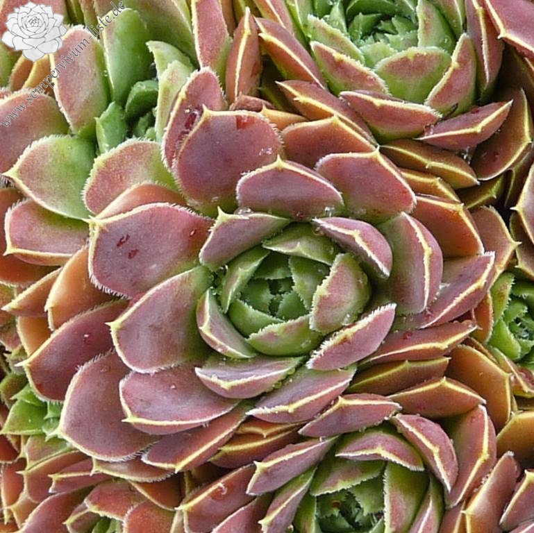 kleine Rosetten, Basis grün, helles rot-rosa, Blattränder hell, bewimpert