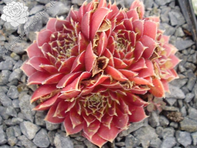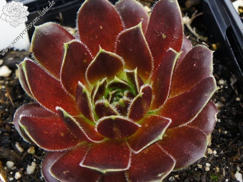 kleine Rosetten, Blätter rundlich, kurz bespitzt, burgunderrot - braun