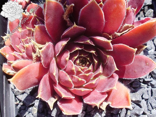 Rosetten bis 6 cm, sattes rot, Blattränder hell, bewimpert