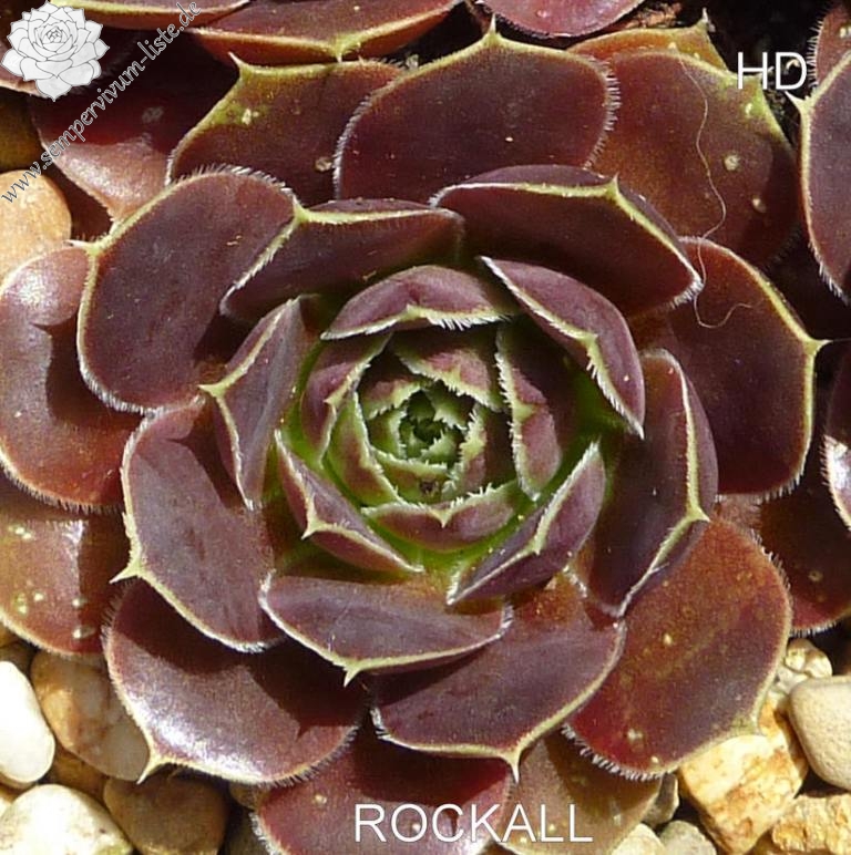 Rosetten bis 5 cm, Blätter rundlich, kurz bespitzt, purpurrot - weinrot, Blattränder hell, bewimpert