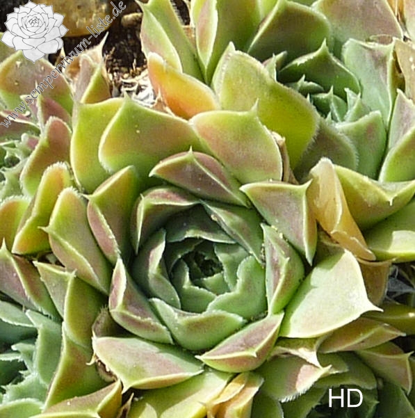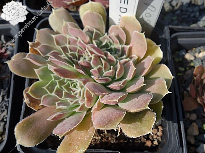 kleine Rosetten, Blätter eiförmig, lang bespitzt, Mischtöne gelbgrün, rosa überhaucht