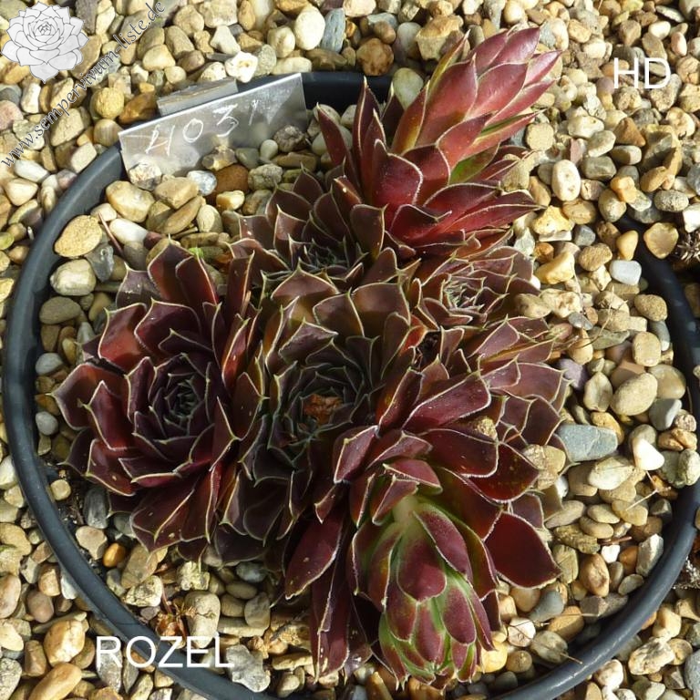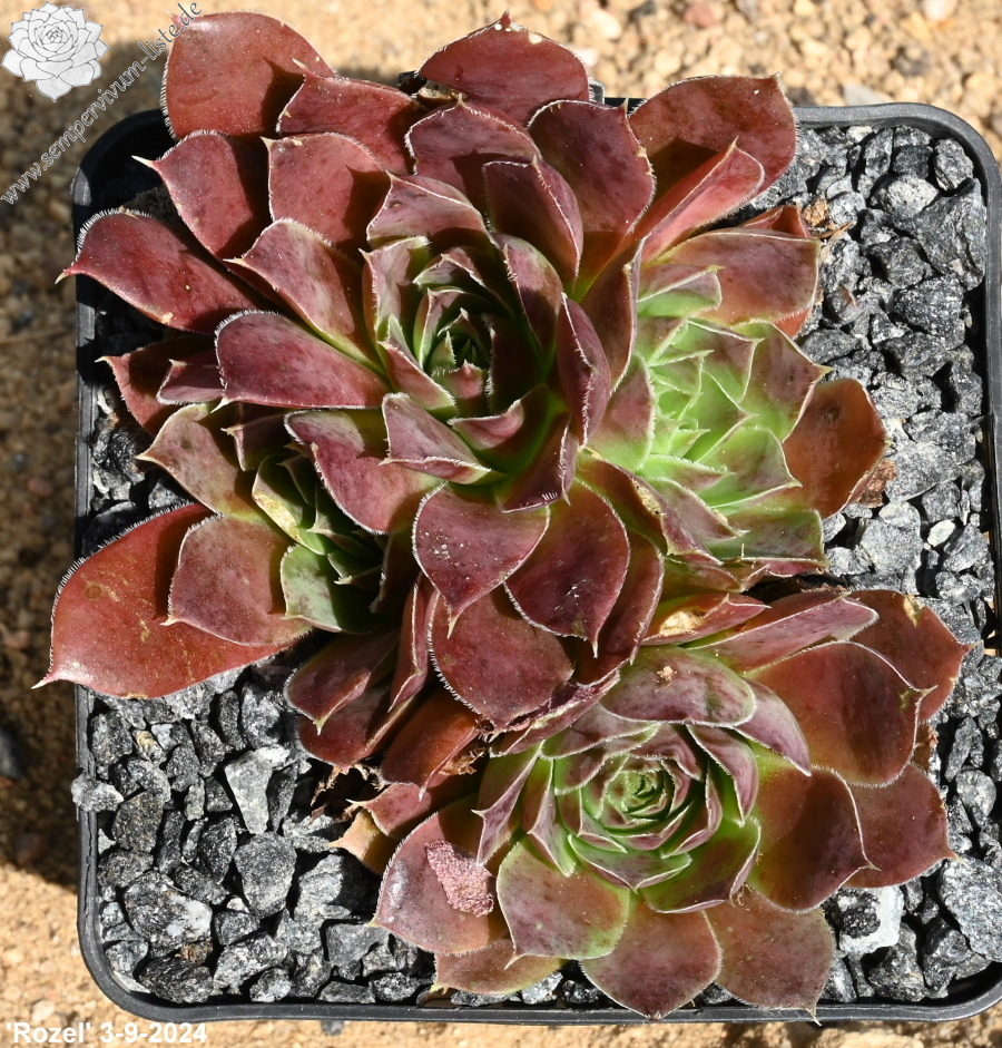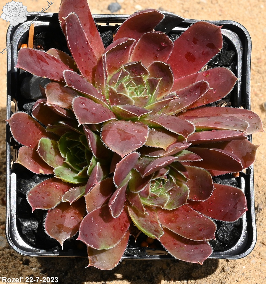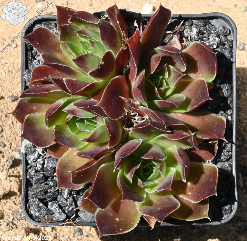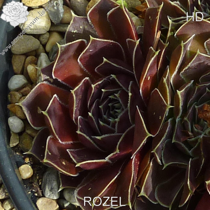Rosetten bis 5 cm, Blätter keilförmig lang bespitzt, rotbraun - kastanienbraun , Blattränder hell