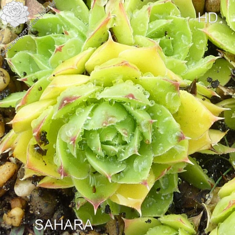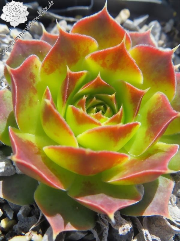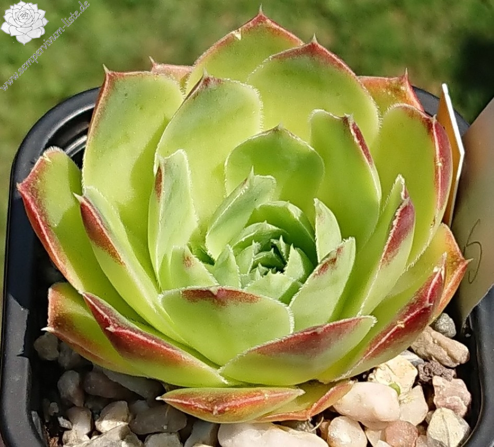 kleine Rosetten , Blätter oval, lang bespitzt, weissgrün - leuchtgelb, Blattspitzen rötlich