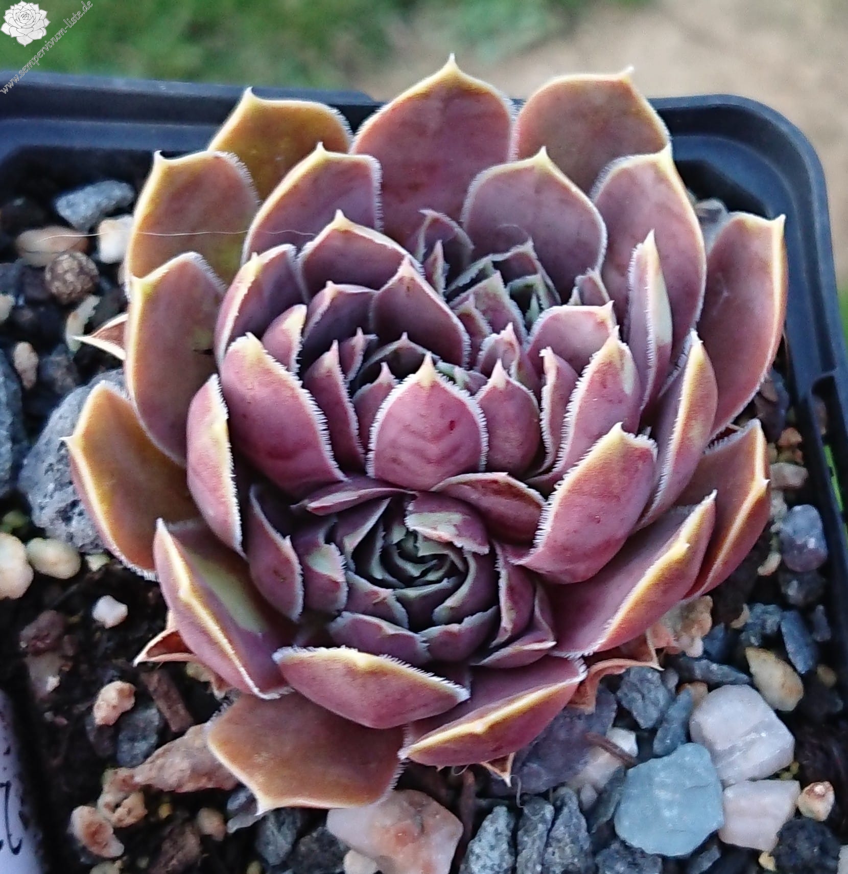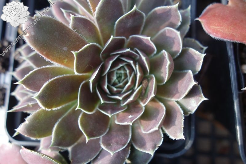 kleine Rosetten , Blätter oval, lang bespitzt, altrosa, Blattränder hell, bewimpert